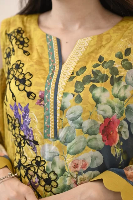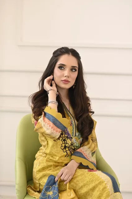 Flaunt your inner Diva with an effortless and chic printed lawn design in mustard color, the perfect fit for summer.